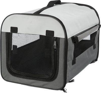 This handy mobile pet carrier from Trixie is made of polyester. This makes the travel crate lightweight, quick to set up, and easy to fold. The crate comes with a handy carrying bag, so you can easily take the travel crate to any desired destination. Ideal for shows, travel, or visits. With the loops on the bottom and the included pegs, you can easily secure the crate firmly in place, allowing for outdoor use.