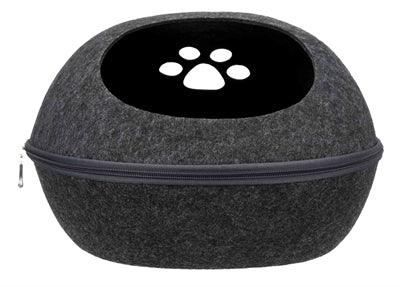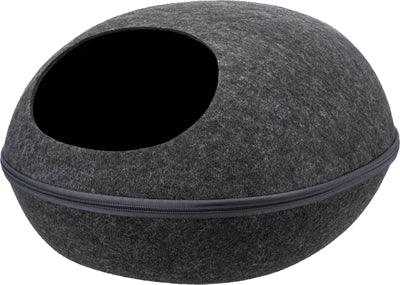 Deze Trixie Relax Iglo Liva Kattenmand Antraciet 40X24X47 cm is een heerlijk mandje met een ronde vorm. In dit mandje zou je het liefst zelf willen gaan liggen! Dit gezellige kattenhuisje is rond van vorm, met aan de voorkant een gat dat toegang biedt voor de kat. Heerlijk veilig en knus slapen dus! Het huisje is gemaakt van vilt (polyester), wat er niet alleen leuk uitziet, maar er ook voor zorgt dat het huisje isolerend en vuilafstotend is. Het huisje komt met een kussen met polyestervlies vulling en pluche bekleding. Ook heeft de iglo een ritssluiting rondom, en kun je het gehele mandje in elkaar plaatsen en dus ruimtebesparend opbergen. Een heerlijk knus en origineel mandje voor jouw kat!