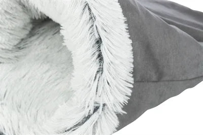 The Trixie Relax Sleeping Bag Harvey Grey/White 60 x 50 cm is a sleeping bag for cats or small dogs, a bed to snuggle into, lined with long-pile plush and shape-retaining. Your dog or cat can really hide away in this lovely Trixie sleeping bag. The Harvey sleeping bag is shape-retaining thanks to the metal ring and allows your pet to snuggle up wonderfully. The polyester fleece filling and the long-pile plush and velour-look lining make the sleeping bag extra comfortable. The modern colour scheme ensures that this sleeping bag fits into any interior!