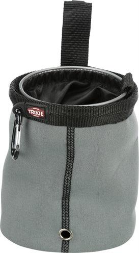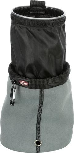 The Trixie Snack Bag Twist Treat Assorti 14x11 cm is a multifunctional snack bag for dogs, with an adjustable twist closure, poop bag holder, and carabiner hook, and is waterproof. This handy snack bag is perfect for all occasions! Of course, this handy bag offers plenty of space for the reward snacks you want to take with you on walks for your dog. The handy twist-off closure is ideal. By twisting the fabric tighter or looser, you regulate access to the contents. The closure can be completely closed when you don't need to access snacks and also protects against rain. In addition, this handy bag has an integrated poop bag dispenser, so you always have your poop bags at hand without having to carry an extra holder. You can attach a dog whistle or clicker to the carabiner hook, and store loose items you take on your walk in the outer pockets. With reflective outer pockets that make the bag highly visible! With a fastening loop and clip for attaching to a belt.