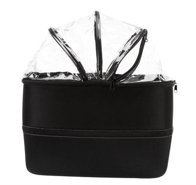 De mand is voorzien van een gaasafdekking die voorkomt dat je hond of kat eruit kan springen. Tegelijkertijd zorgt het gaas voor uitstekende luchtcirculatie, zodat jouw dier ook op warme dagen prettig mee kan. Is het regenachtig? Gebruik dan de meegeleverde regenkap om je huisdier droog te houden. Liever open reizen? Zet de kap dan open en maak je hond of kat veilig vast aan de geïntegreerde korthouder.