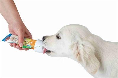 If you give your dog treats from a tube, you know the problem of the broken tube. When your dog enthusiastically eats from the tube, it can happen that he accidentally puts his teeth in the tube or in your hand. By putting this protective cap over the end of the tube, your dog can enjoy treats from the tube without biting it apart!