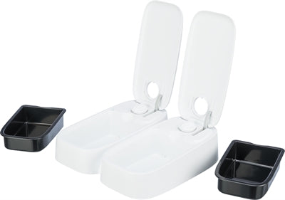 The Trixie Tx2 Automatic Food Dispenser in white/black, 2x300 ml, is a food bowl that provides food and water during your absence.