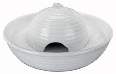 Looking for a great pet fountain for your dog or cat, but prefer something a bit more durable? Then this Trixie Vital Flow Mini ceramic pet fountain is perfect for you. Unlike a regular water bowl, this fountain gives your pet two choices: they can drink flowing water from the fountain or still water from the bowl. The purifying filter ensures clean water, and the pump provides ample circulation, resulting in oxygen-rich water and natural cooling. The improved taste encourages your pet to drink more often. And you won't be bothered, as the fountain is energy-efficient and the pump is quiet. Plus, the ceramic bowls are dishwasher-safe, for refreshingly clean water!