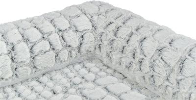 De mand is bekleed met een combinatie van velours en zacht pluche, wat zorgt voor een heerlijk comfortabele en warme slaapomgeving. De hoes is afneembaar en wasbaar op 40 graden Celsius, zodat de mand eenvoudig fris en hygiënisch blijft. De anti-slip onderkant voorkomt verschuiven, zelfs op gladde vloeren.