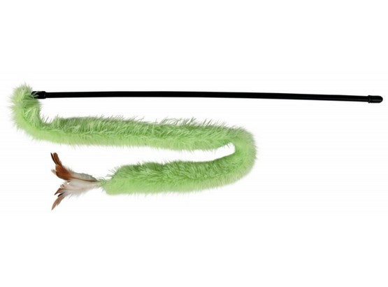 Wędka zakończona jest pluszowym ogonem, na którego końcu umieszczono piórka - dodatkowo zwiększające jej atrakcyjność. Wykonana z nietoksycznego tworzywa.