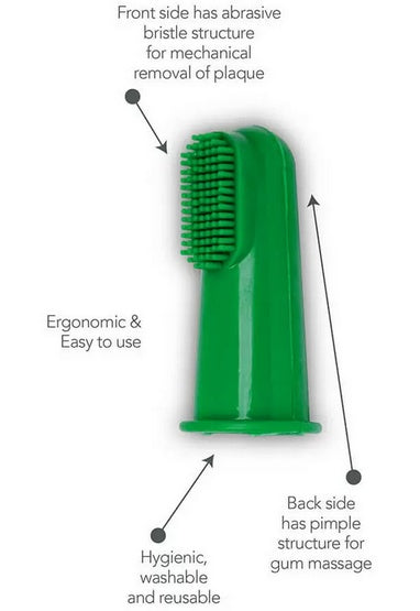 • Silikonowa szczoteczka jest elastyczna i dopasowuje się do palca.