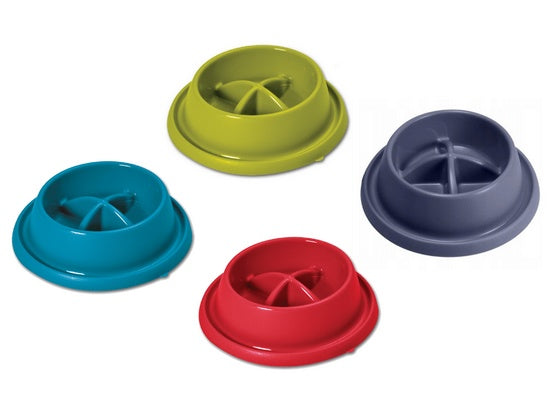 Miska z tworzywa, którą zaprojektowano w celu utrudnienia natychmiastowego spożycia karmy. Dno z wypustkami, które znacznie spowalniają pupila, pomaga uniknąć problemów żołądkowych w wyniku przejedzenia i ogranicza zadławienia.