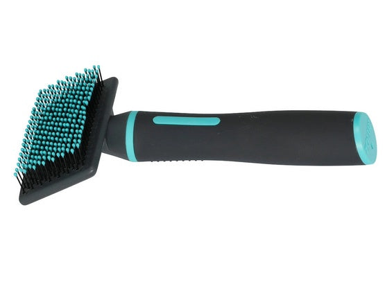 Umożliwia delikatne szczotkowanie podszerstka, dzięki elastycznym igłom, których plastikowe końcówki chronią skórę psa przed podrażnieniami. Plastikowe końcówki zapewniają większy komfort zwierzęcia. Rozczesuje, usuwa martwy podszerstek i wygładza sierść.
