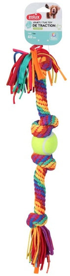 Zolux Zabawka dla psa szarpak sznur z piłką tenisową Rainbow 60cm