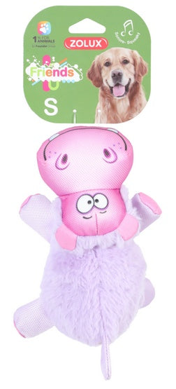 Wbudowana piszczałka sprawia, że pluszak dostarcza zwierzęciu jeszcze więcej radości.