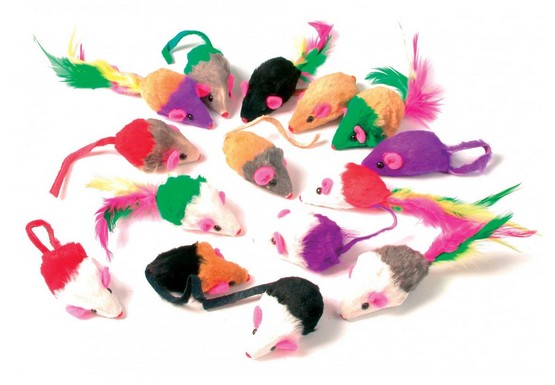 Zestaw 24 kolorowych myszek dla kota.
